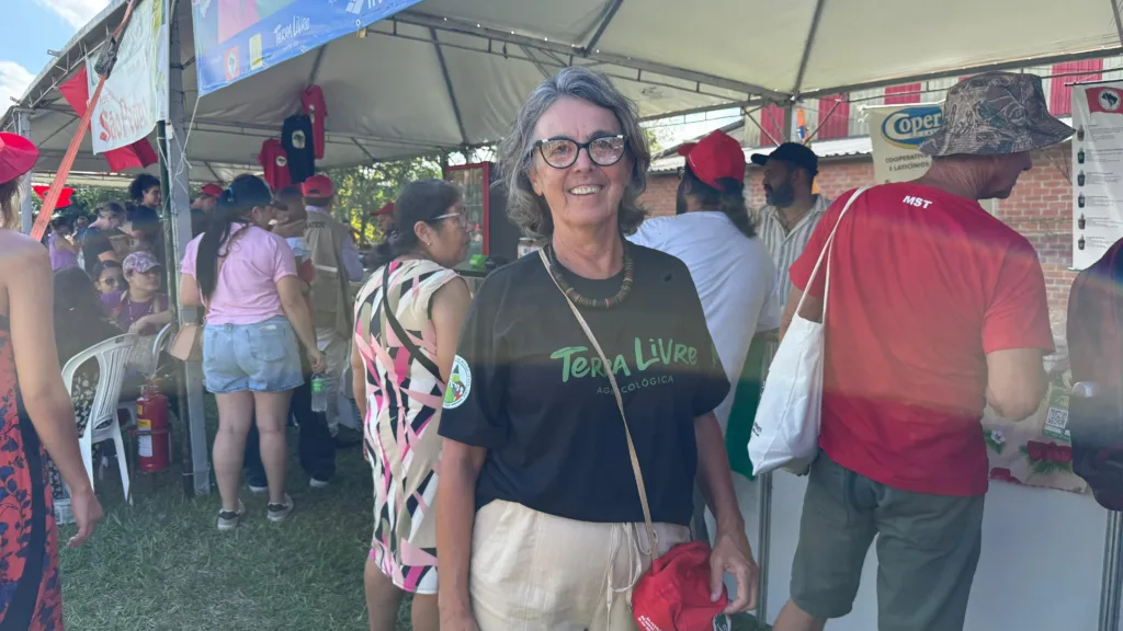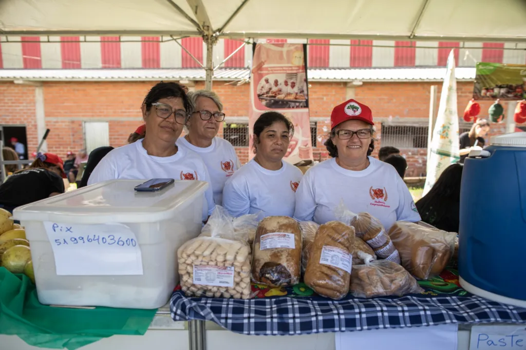 A feira também contou com a participação de grupos que atuam na transformação de alimentos. A Cooperativa Mãos na Massa, formada por mulheres assentadas, apresentou pães e cucas produzidos para abastecer a merenda escolar em municípios da região. A integrante Noeli Salet Costa descreveu a participação no evento como um momento de encontro e troca, afirmando que é “maravilhosa, muito bom. A gente vê as pessoas amigas, conhecidos de tempo e também vende, né? Encontrar companheiros. É por aí”.
