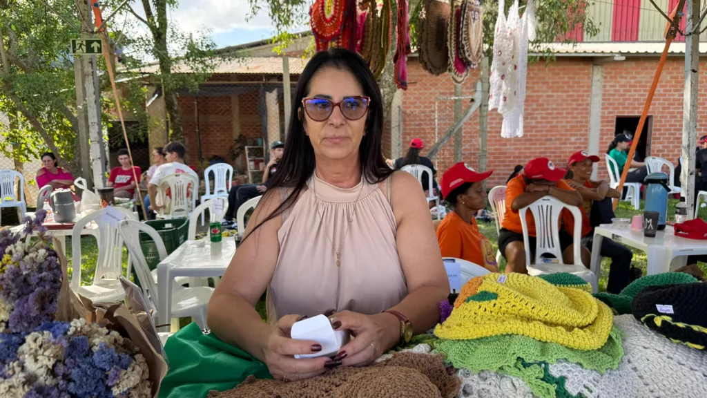 Eomara Soraes, assentada desde a origem do movimento na Fazenda Annoni, apresentou peças artesanais e destacou o impacto desse trabalho na vida das mulheres. Segundo ela, a atividade contribui para a independência financeira e para o enfrentamento de situações de vulnerabilidade.