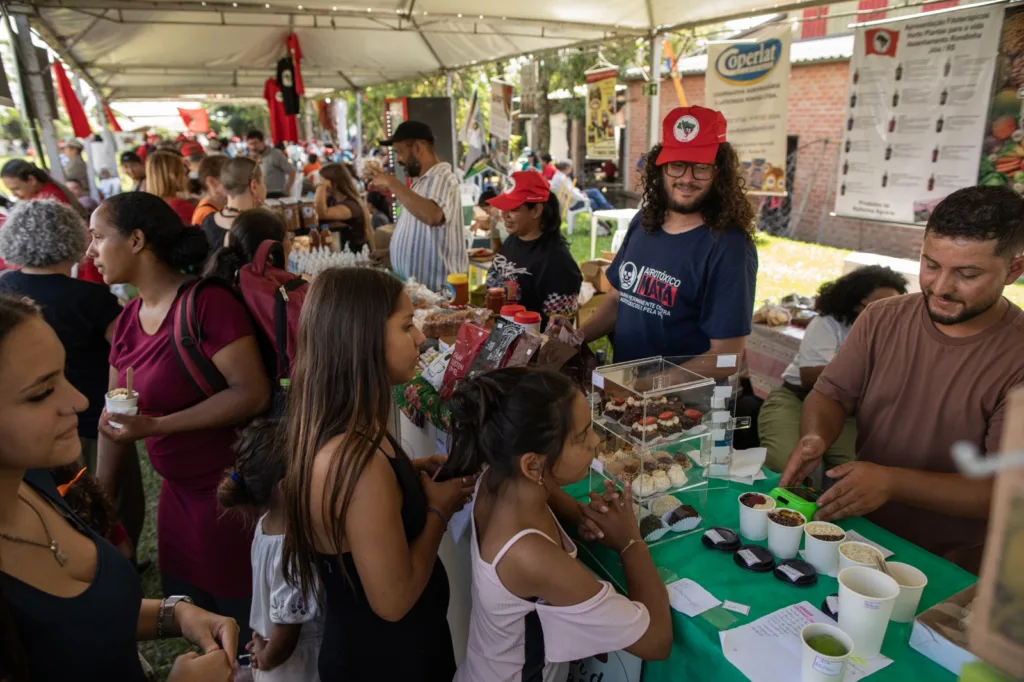 A produção apresentada na feira também está diretamente conectada às políticas públicas de segurança alimentar. Parte dos alimentos produzidos nos assentamentos é destinada a programas governamentais que abastecem escolas e cozinhas solidárias.