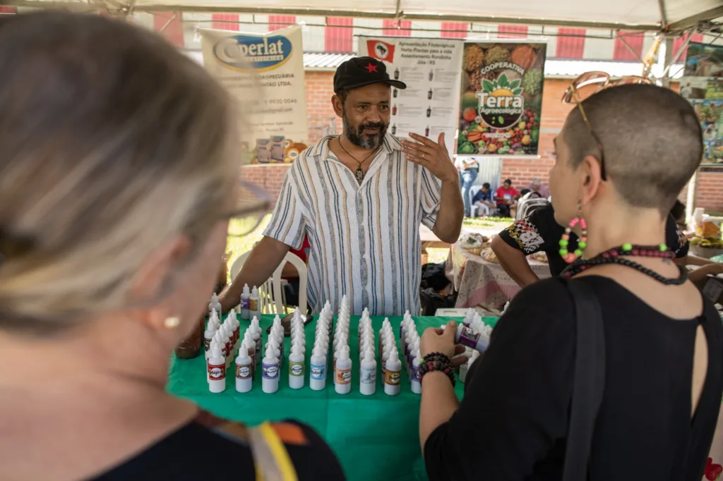 Essa dinâmica também foi ressaltada por Brenda Santos Tose, da Cooperativa dos Trabalhadores Assentados da Região de Porto Alegre, que levou à feira produtos como diferentes tipos de arroz e geleias. Para ela, o contato direto com o público urbano ajuda a enfrentar estigmas construídos sobre a reforma agrária. “A gente traz alimentação, a gente quer trabalhar pela terra, lutar pela terra, viver do que ela pode nos proporcionar”, afirmou, ao comentar o papel da feira na aproximação entre campo e cidade.