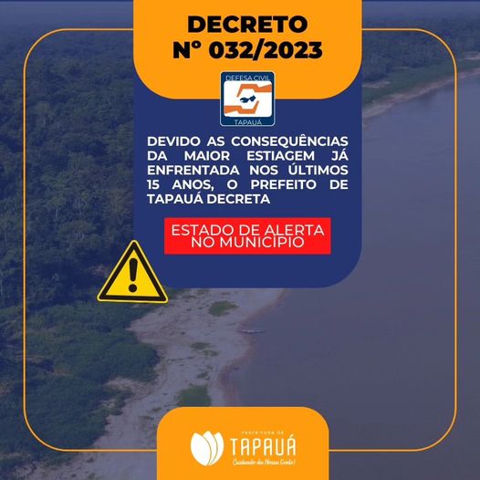 Devido as consequências da vazante da bacia do Purus, intensificadas pelo fenômeno “ELNIÑO”,  o Estado de Alerta no município de Tapauá visa preparar o governo local para enfrentar e responder a situações de emergência iminente  que possam ocorrer na área municipal.